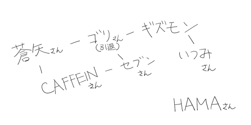 んで、蒼矢さんのところで絵チャをやったときにCAFFEINさん、セブンさん、ゴリさんもいて